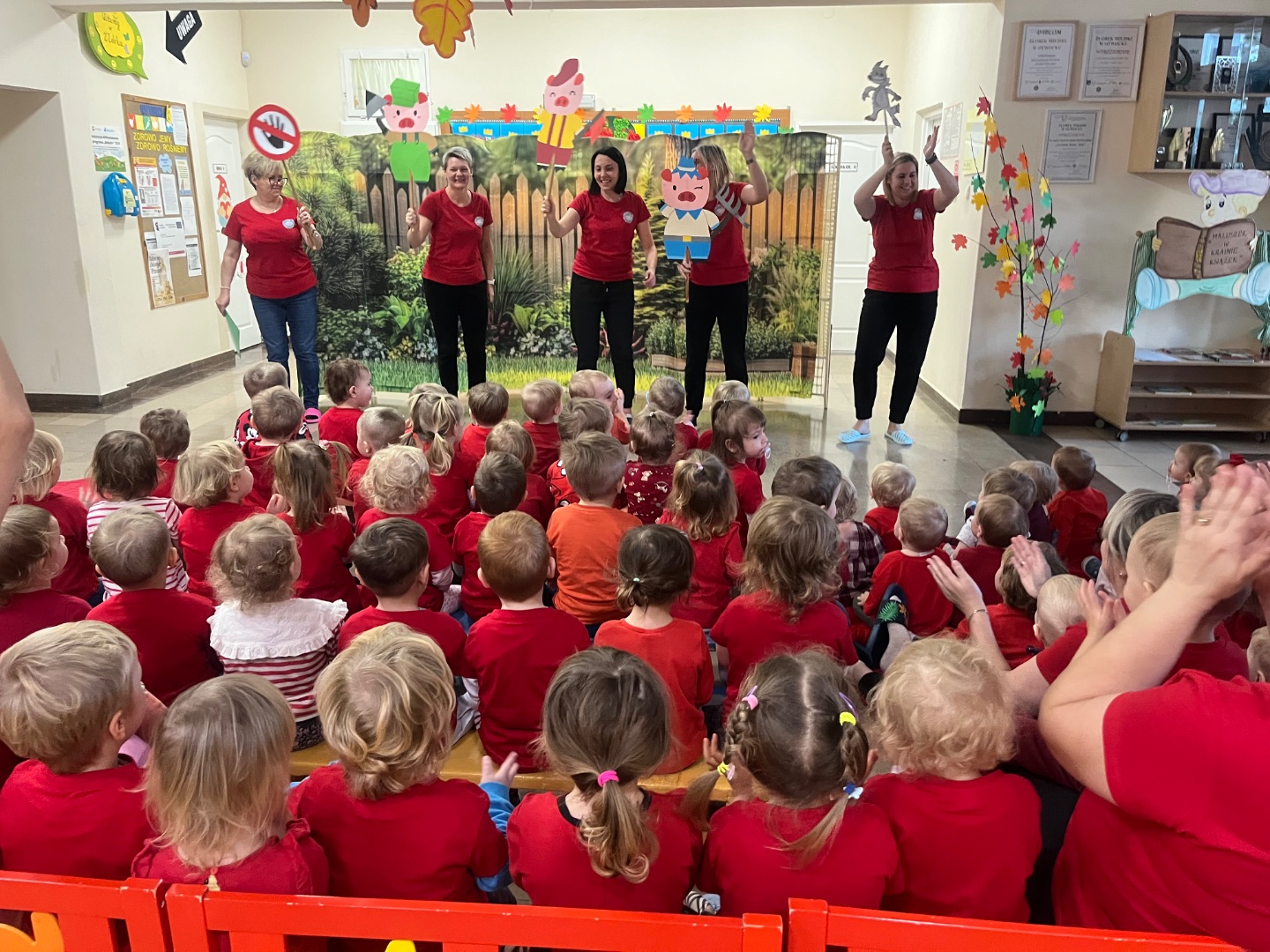 Udział Żłobka Miejskiego w Otwocku w projekcie "Kampania Bezpieczne Dzieciństwo" to był dobrze wykorzystany czas. Rodzice i kadra żłobka uczestniczyła w szkoleniach zgodnie z harmonogramem, pogłębiając swoją wiedzę na temat ochrony dziecka, zaburzeń będących konsekwencją krzywdzenia, jak zadbać o swój dobrostan, który jest warunkiem bezpiecznego dziecka. Rodzice otrzymali informacje na temat krzywdzenia, zaniedbania, jak rozpoznać dziecko krzywdzone, gdzie szukać pomocy, jak postępować jeśli zauważymy podejrzane sytuacje. Przejrzeliśmy również nasze standardy ochrony dzieci przed krzywdzeniem i omówiliśmy podejmowane przez placówkę działania chroniące dzieci. Nasze maluszki uczestniczyły w ciekawych zajęciach. Teatrzyki przygotowane przez opiekunów budowały świadomość własnych granic i granic innych osób, rozwijały umiejętności społeczne takie jak: współpraca, zabawa razem, okazywanie życzliwości, nauczenie dziecka, że może powiedzieć "nie lubię tego", "STOP", " nie chcę", modelowanie dobrych, pozytywnych wzorców.